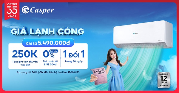Nhằm đáp ứng nhu cầu của khách hàng trong mùa hè này, Viettel Store chính thức mở rộng ngành hàng bán sản phẩm, bằng việc bán các dòng máy điều hòa Casper trên toàn quốc với mức giá mở bán cùng ưu đãi tặng kèm siêu hấp dẫn.