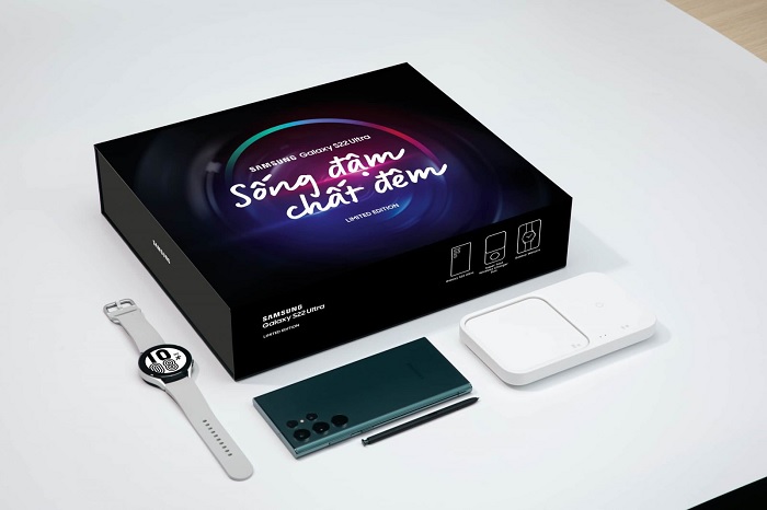 S22 Ultra bản giới hạn và bản thường có gì khác nhau? Thực chất phiên bản giới hạn Galaxy S22 Ultra Samsung giới thiệu lần này là một bộ sản phẩm được bán cùng nhau. Thay vì mua lẻ từng thiết bị với giá cao hơn, Samsung đã gộp chung lại thành một combo để có giá bán rẻ nhất. Cụ thể, combo Galaxy S22 Ultra phiên bản giới hạn lần này bao gồm: