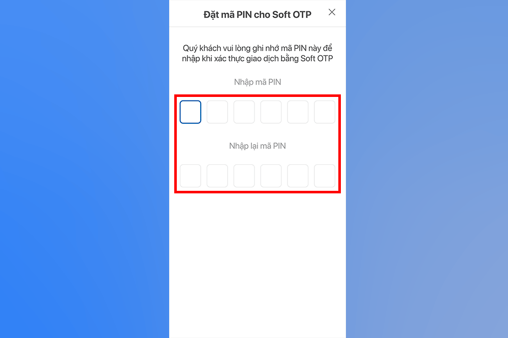 Bước 5: Nhập mã pin -> nhấn vào “Tiếp tục” khi hệ thống thông báo đã tạo mã Pin thành công.