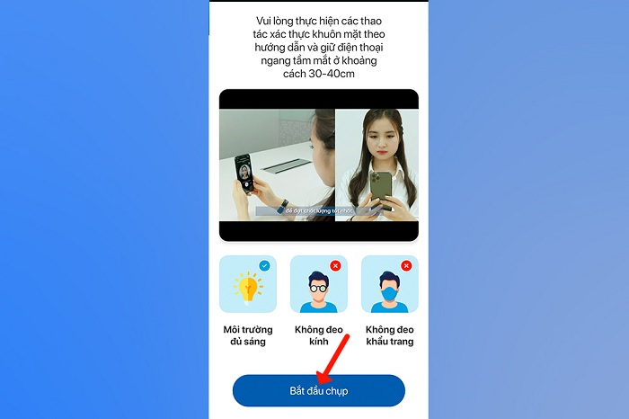 Bước 2: Nhấn vào “Bắt đầu” để xác thực khuôn mặt rồi tiếp tục làm theo hướng dẫn của ứng dụng. Tiếp theo hãy kiểm tra lại thông tin một lần nữa xem đã chính xác hay chưa.