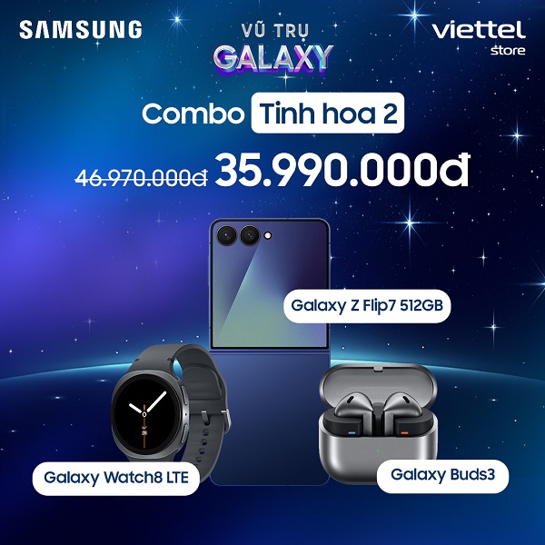 Combo Tinh Hoa 2: Galaxy Z Flip7 512GB, Galaxy Buds3 và Galaxy Watch8 LTE giá chỉ 35.990.000đ