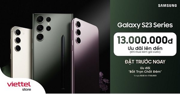 Bộ ba phiên bản Samsung Galaxy S23/S23+/S23 Ultra sẽ chính thức được mở bán tại Việt Nam vào ngày 24/02/2023. Theo đó, các tùy chọn màu sắc: Đen Phantom, Trắng Cotton, Tím Lilac và Xanh Botanic được bán rộng rãi tại tất cả các siêu thị Viettel Store trên toàn quốc.