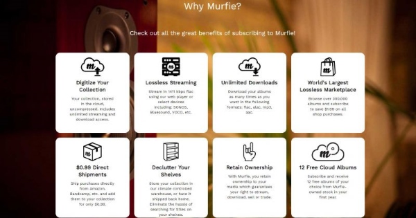 Website Murfie được xây dựng bởi những nhà sưu tầm, do nhà sưu tầm và vì nhà sưu tầm. Cách dễ hiểu nhất để miêu tả web nghe nhạc chất lượng cao Murfie đó là một cửa hàng trực tuyến cung cấp nhạc second-hand.