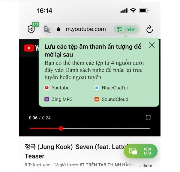 Tính năng Danh sách nghe trên trình duyệt Cốc Cốc cho iOS