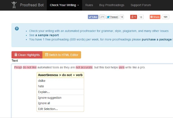 Với giao diện đơn giản có phần giống với “Google translate”, Proofread Bot đã trở thành trợ thủ đắc lực của những người chuyên viết blog hay các bài luận dài. Ngoài ra, Proofread Bot cũng là một website học tiếng Anh khá hữu ích đặc biệt dành cho những bạn có đam mê với viết tiểu luận.