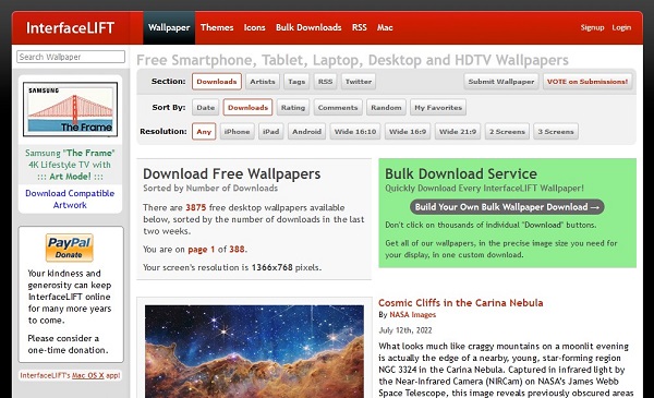 Đây là website tải hình nền đẹp được cập nhật hình ảnh hàng ngày với độ phân giải cao. Khi tải ảnh trên này xuống thì người dùng sẽ được lựa chọn được thiết bị để tải với mục đích có được kích thước phù hợp nhất thậm chí là cả kích thước cho ảnh trên những nền tảng trên mạng xã hội.