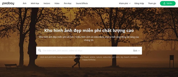 Giao diện của pixabay cũng vô cùng dễ sử dụng tuy nhiên trang chủ lại không được phân chia theo chủ đề. Nếu như người dùng muốn tìm nguồn ảnh theo chủ đề khác nhau, thì có thể tìm kiếm trên thanh công cụ và sau đó có thể mở được mục chủ đề ở phần bộ lọc trên website.