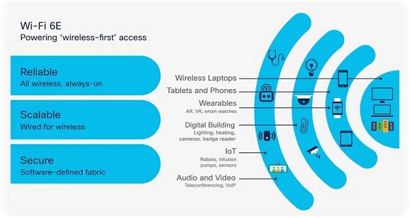Vậy cụ thể, ưu điểm của Wi-Fi 6E là gì? Chúng ta có thể nhận thấy rằng hiện nay, kết nối không dây đã có mặt ở khắp nơi và chúng ta thường sử dụng nó ở 2 băng tần phổ biến là 2.4GHz và 5GHz. Riêng với Wi-Fi 6E còn nâng cấp kết nối này lên một tầm cao mới khi sử dụng băng tần 6GHz. Bởi vậy, người dùng sẽ có những lợi ích như sau: