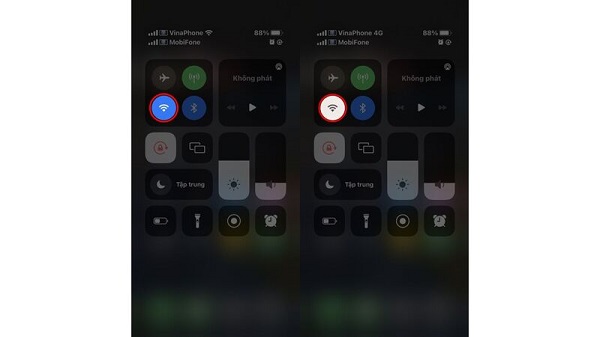 Đôi khi lỗi iPhone tự tắt Wifi khi khóa màn hình không phải xuất phát từ phần mềm điện thoại mà là do kết nối không được ổn định. Người dùng hãy thử tắt và bật lại WiFi trên iPhone của mình để xem điều đó có khắc phục được vấn đề hay không. Mở Trung tâm điều khiển trên điện thoại >> nhấn vào biểu tượng Wifi để tắt tính năng này >> nhấn để mở lại.