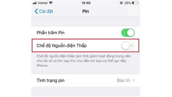 Tắt chế độ tiết kiệm pin