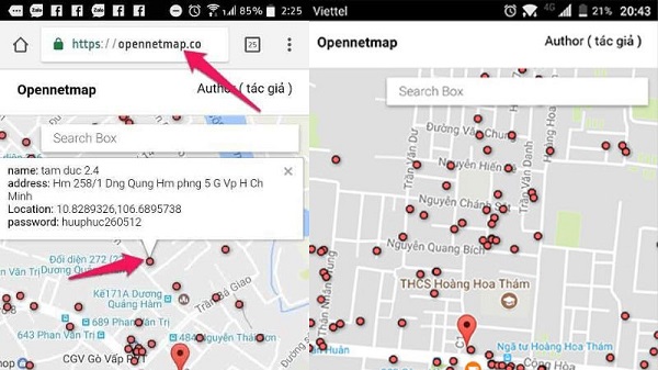 Trên máy tính bạn có thể sử dụng bất kỳ trình duyệt web nào và truy cập vào trang web opennetmap.co hoặc Wifispc.com. Khi bạn truy cập vào trang web này, bạn sẽ thấy hiển thị các chấm màu đỏ trên bản đồ. Những chấm đỏ này là đại diện cho các điểm truy cập Wifi có mật khẩu mà người dùng có thể đến khu vực tương ứng để sử dụng miễn phí. Bạn chỉ cần nhấp vào các chấm đỏ trên bản đồ để lấy thông tin về điểm phát sóng Wifi.