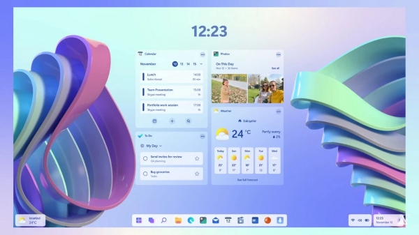 Ngoài ra, những thông tin như thời tiết sẽ được chuyển sang góc trái trên cùng và các dịch vụ WiFi, pin, ngày và giờ đặt tại góc phải. Trường tìm kiếm sẽ được chuyển lên vị trí chính giữa trung tâm màn hình. Tổng thể thiết kế giao diện trên Windows 12 hiện đại hơn so với phiên bản tiền nhiệm Windows 11.