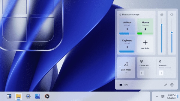 Bảng điều khiển trung tâm trên Windows 12 cũng được mở rộng và hiển thị đẹp hơn. Các tác vụ cơ bản như kết nối WiFi, bluetooth, chỉnh âm thanh, ánh sáng màn hình,…cũng được sắp xếp và thiết kế lại khoa học hơn để quản lý kết nối máy nhanh chóng, thay vì phải vào cài đặt từng thay đổi.