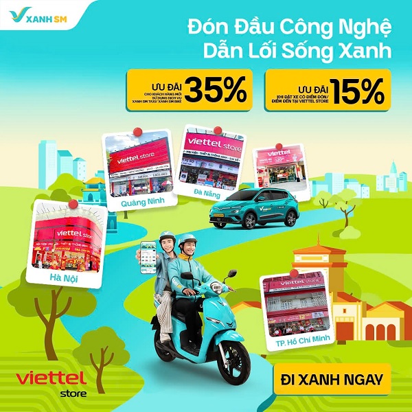 Nhằm thúc đẩy lối sống xanh và bền vững trong cộng đồng, Xanh SM và Viettel Store chính thức hợp tác từ ngày 1/3/2025. Thông qua sự hợp tác này, khách hàng của Viettel Store sẽ được hưởng những ưu đãi đặc biệt khi sử dụng dịch vụ Xanh SM, mang lại trải nghiệm di chuyển thân thiện với môi trường và tiết kiệm hơn.