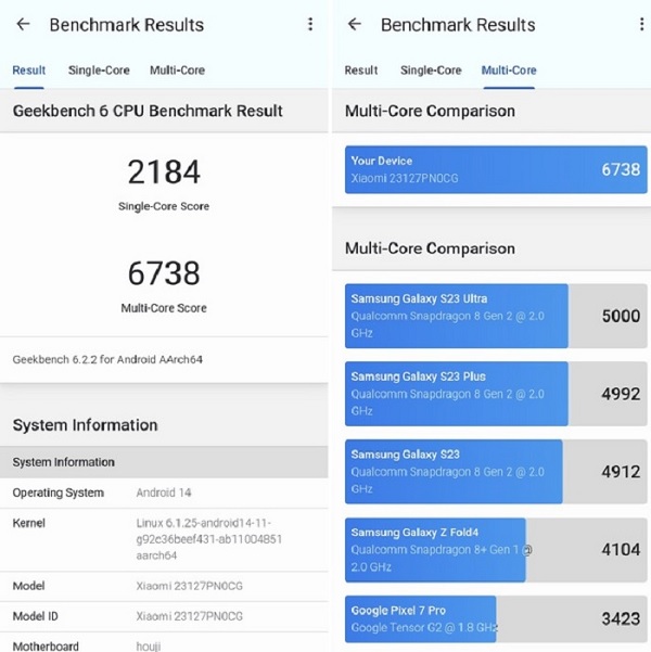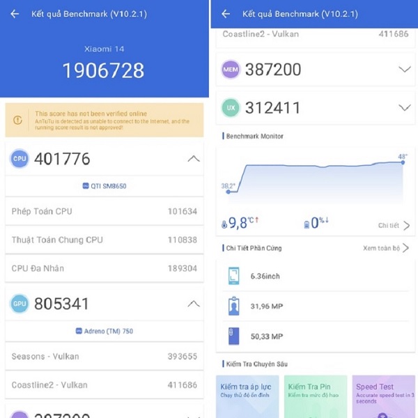 Dù Xiaomi 14 có kích thước chỉ nhỏ gọn trong lòng bàn tay nhưng cấu hình của máy được đánh giá rất tốt. Theo đó, máy được trang bị vi xử lý Snapdragon 8 Gen 3 mới nhất không giới hạn xung nhịp. Chính vì vậy mà điểm số benchmark khá cao, chỉ thua những smartphone chơi game tích hợp nhiều hệ thống tản nhiệt.