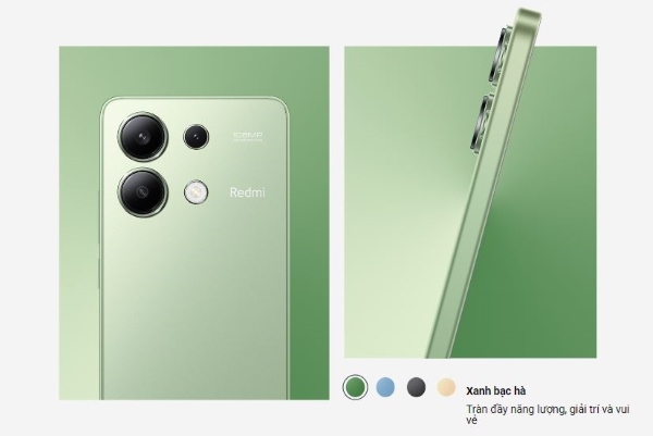 Xiaomi cung cấp cho Redmi Note 13 bản chuẩn 3 tùy chọn màu sắc, bao gồm: Đen Khoáng Thạch, Xanh Bạc Hà và Cầu Vồng Hoàng Hôn. Mỗi phiên bản màu sắc đều mang sức hút riêng, đặc biệt khi kết hợp với thiết kế mặt lưng được hoàn thiện từ chất liệu nhựa bóng cao cấp càng thêm nổi bật.