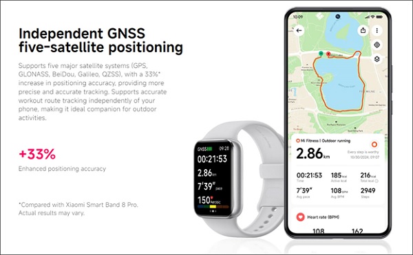 Bên cạnh đó, với hơn 150 chế độ thể thao, Smart Band 9 Pro hỗ trợ người dùng trong việc theo dõi các hoạt động thể chất đa dạng, từ chạy bộ đến bơi lội. Đặc biệt, chiếc smartband này còn trang bị GPS độc lập chuẩn GNSS, giúp bạn theo dõi chính xác quãng đường tập luyện mà không cần đến điện thoại.