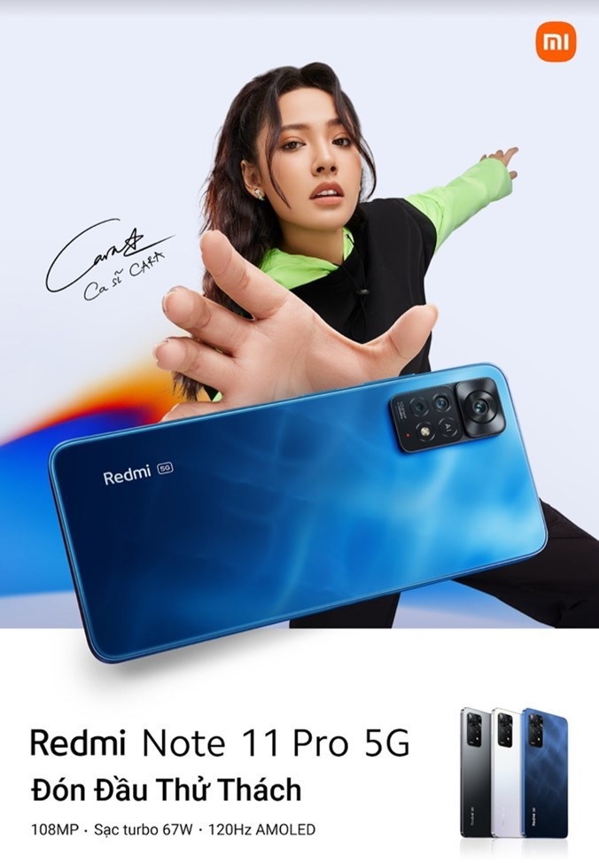 Cara, cô ca sĩ đa tài, sẵn sàng mọi thử thách với liên tiếp ra mắt những dự án mới. Và để đón đầu những hành trình đầy thách thức đó, luôn cần duy trì một năng lượng bền bỉ và nhanh chóng hồi phục sau mỗi dự án để đón đầu những thử thách tiếp nối. Đồng hành cùng dòng Redmi Note 11, Cara chính là minh chứng của một năng lượng không thể thay thế, sức mạnh vô song, một hình ảnh tiêu biểu như sức mạnh khủng của pin dòng Redmi Note 11.