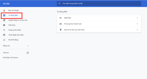 Bước 3: Chuyển đến phần “Tự động điền” và tắt các mục mà bạn không muốn hệ thống tự động nhập.