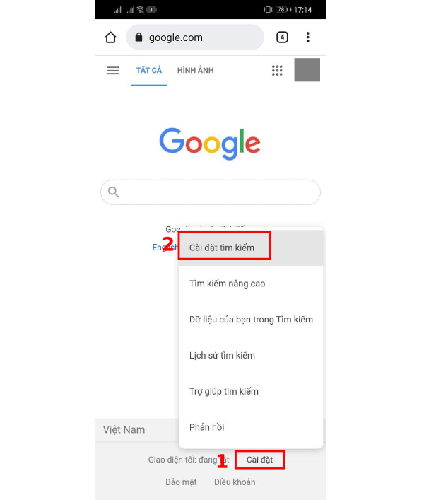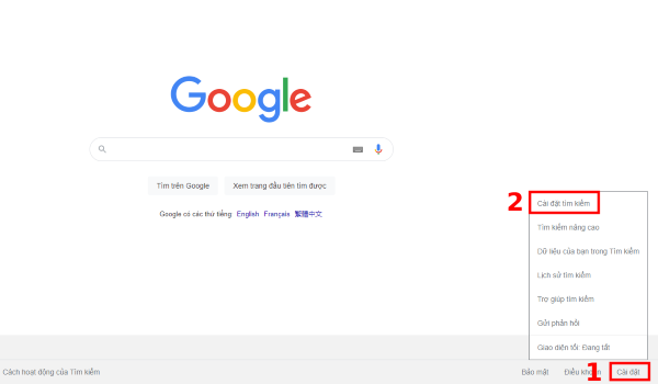 Bước 2: Ở phần dưới cùng bên phải, nhấn vào “Cài đặt” rồi chọn “Cài đặt tìm kiếm” trong cửa sổ hiển thị.