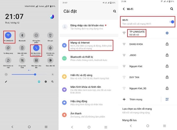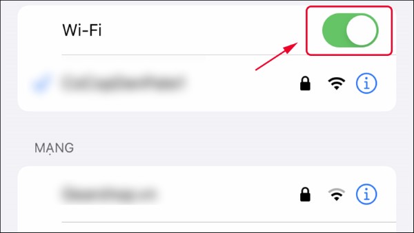 Cách thực hiện: Mở Cài đặt => Chọn Wi-Fi => Tắt Wi-Fi và bật lại để kết nối lại mạng.