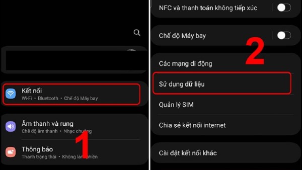 Bước 1: Truy cập Cài đặt => Chọn Kết nối => Nhấn Sử dụng dữ liệu.