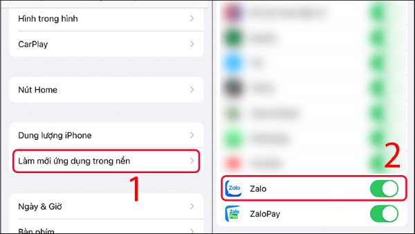Bước 3: Nhấn Làm mới ứng dụng trong nền (Background App Refresh) để đảm bảo Zalo có thể chạy ngầm mượt mà.