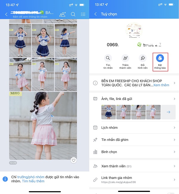 Nếu bạn thấy Zalo không hiện thông báo tin nhắn thì hãy lập tức kiểm tra lại xem mình có tắt tính năng thông báo cuộc trò chuyện hay không. Nếu tắt hãy bật lên theo các bước sau: Mở cuộc trò chuyện lên -> chọn vào biểu tượng 3 gạch góc trên cùng màn hình -> Vào mục thông báo kiểm tra nếu đang ở chế độ tắt thì hãy bật lên.